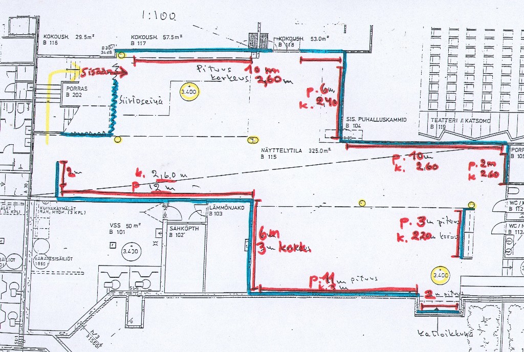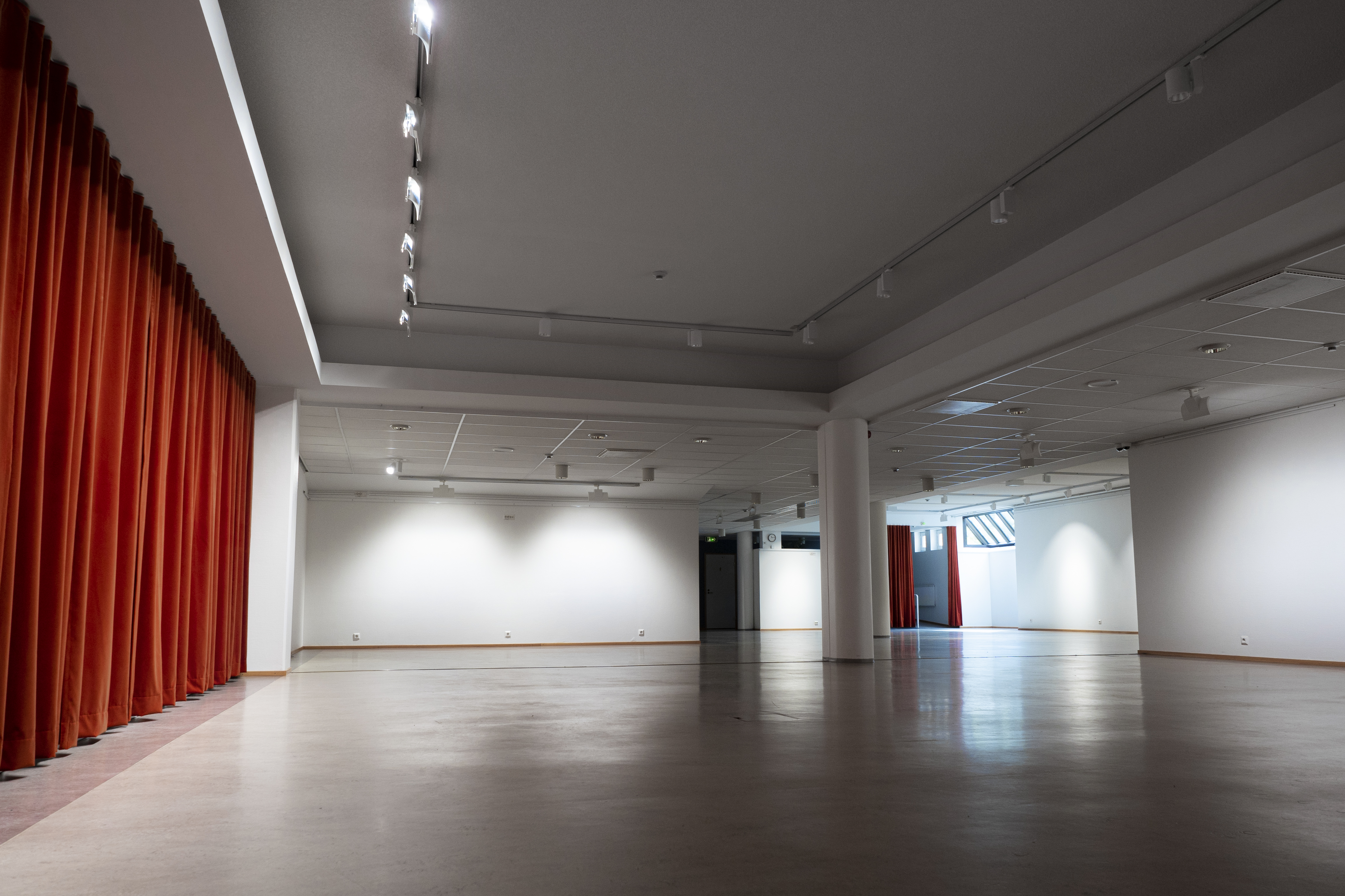 The area of the Liljelund hall is about 325m² and there is about 50 meters of wall space for hanging artwork. The height of the suspension rails varies between about 2-3 meters.
