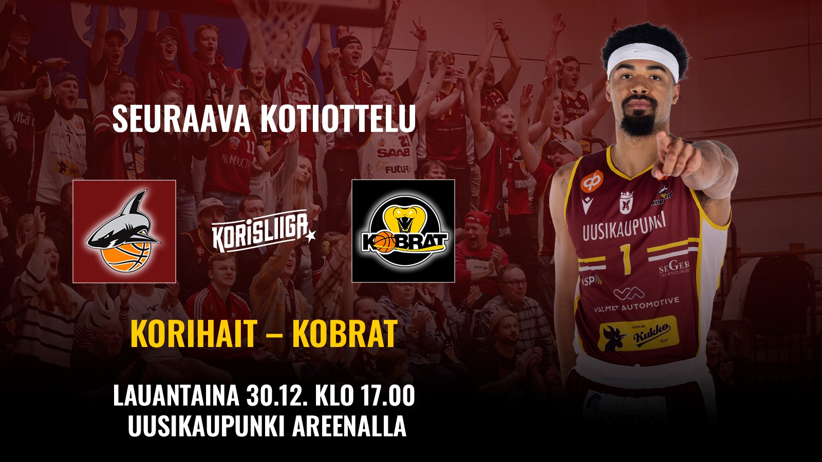Uusikaupunki Areenalla pelataan Korisliigan runkosarjan peli la 30.12. klo 17 Korihait vs Kobrat Lapualta.