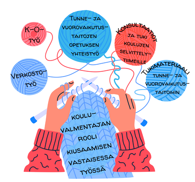 Kouluvalmentajana olen suurimman osan ajastani Uudenkaupungin kouluilla. Olen mukana oppitunneilla, välitunneilla, opettajanhuoneissa, hyvinvointityön ryhmissä ja kutsuttuna myös vanhempainilloissa ja keväällä lisäksi esikouluissa. Joitain asioita ja tapahtumia hoidetaan myös kaupungintalolla, Crusellissa tai etäyhteyksien päästä. Työni kouluilla jakautuu kiusaamisen ja konfliktien ennaltaehkäisyyn yhdessä opettajan tai muun työparin kanssa, ja asiantuntijan konsultoivaan rooliin silloin, kun arjessa on havaittu huolta aiheuttavia konflikteja tai kiusaamistilanteita ja esimerkiksi koulujen selvittelytiimit tai rehtorit kaipaavat mahdollisuutta miettiä jatkotoimenpiteitä. Läsnäolevaa työtä tehdään, jotta konfliktit eivät pitkity, ja jos sitten pitkittyvät eikä muuta voida tehdä, niin K-0-toiminnan myötä verkostojen ja toimintamallien on mahdollista selkeyttää ja auttaa tilanteiden ratkaisussa. Myös huoltajien ja harrastustoimijoiden osallisuudesta arkeen on puhuttu paljon ja osalla kouluista suunniteltu tai tehty erilaisia kokeiluja näiden vahvistamiseksi. Kouluvalmentajana työni kattoteemoja ovat siis tunne- ja vuorovaikutustaitojen opettamisen tuki sekä kiusaamiseen ja konflikteihin puuttumisen tuki.