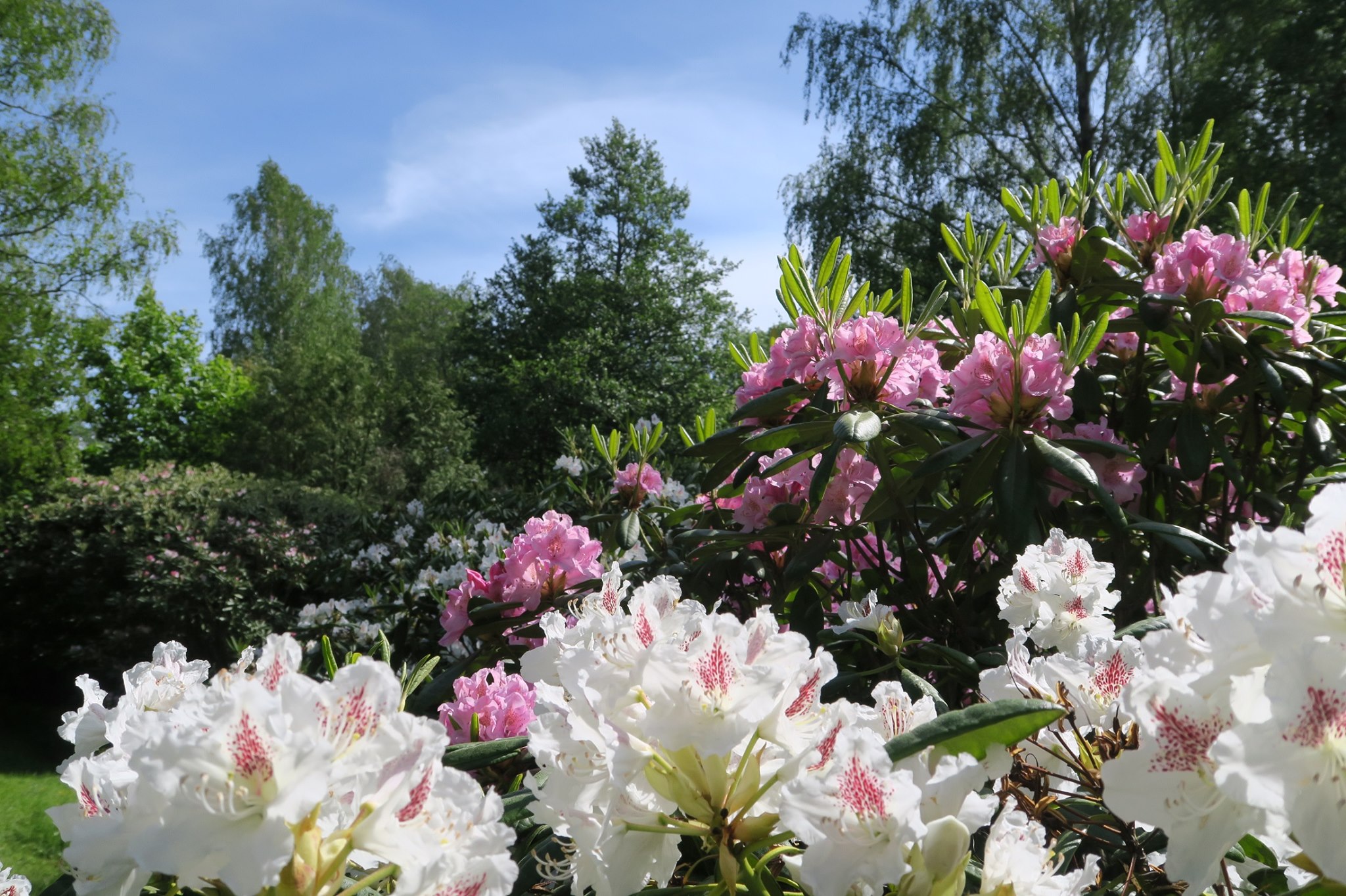 Itäpuistosta pohjoiseen, Käätyjärven ja Ruokolanjärven väliin on istutettu useita alppiruusuja.