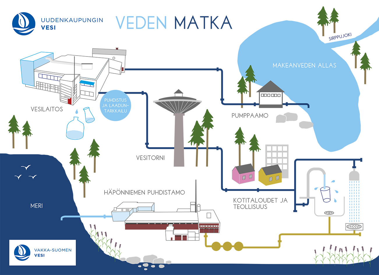 Toimitamme Uudenkaupungin asukkaille ja yrityksille sekä naapurikuntiin hyvälaatuista talousvettä vuoden jokaisena päivänä. Laadukkaalla vedenkäsittelyllä varmistamme, että hanasta virtaava vesi on terveellistä ja turvallista.