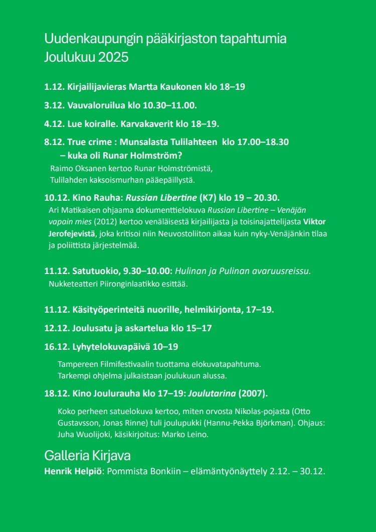 Kaikki kirjaston tapahtumat ovat maksuttomia.